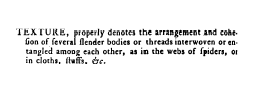 Texture, ---. Encyclopedia Britannica, 1st ed., 1771, 1 page. Posted April 16, 2004. SAMPLE PAGE. File size 396 KB PDF