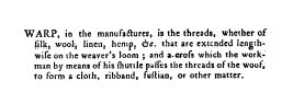 Warp, ---. Encyclopedia Britannica, 1st ed., 1771, 1 page. Posted March 9, 2004. SAMPLE PAGE. File size 396 KB PDF