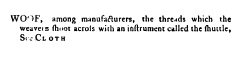 Woof, ---. Encyclopedia Britannica, 1st ed., 1771, 1 page. Posted March 9, 2004. SAMPLE PAGE. File size 392 KB PDF