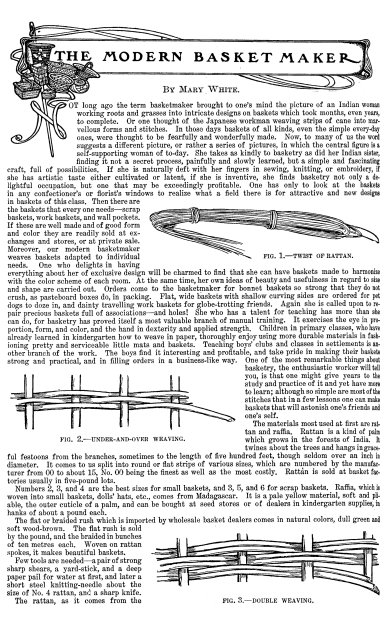 Modern Basket Maker -- I, White, Mary. Everybody's Magazine, Vol. 6, No. 3 (March 1902), 3 pages. CD (HWDA08). Posted April 11, 2003. SAMPLE PAGE. File size 724 KB PDF