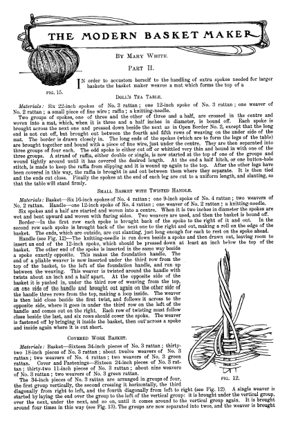 Modern Basket Maker -- II, White, Mary. Everybody's Magazine, Vol. 6, No. 4 (April 1902), 2 pages. CD (HWDA08). Posted April 11, 2003. SAMPLE PAGE. File size 632 KB PDF