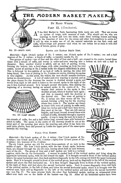 Modern Basket Maker -- III, White, Mary. Everybody's Magazine, Vol. 6, No. 5 (May 1902), 3 pages. CD (HWDA08). Posted April 11, 2003. SAMPLE PAGE. File size 700 KB PDF