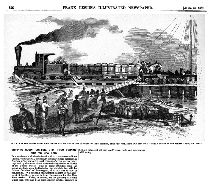Shipping Rosin, Cotton, Etc. from Fernandina to New York, ---. Frank Leslie's Illustrated Newsletter, April 26, 1862, 1 page. Note: American Civil War. CD (HWDA09). Posted August 16, 2003. SAMPLE PAGE. File size 680 KB PDF