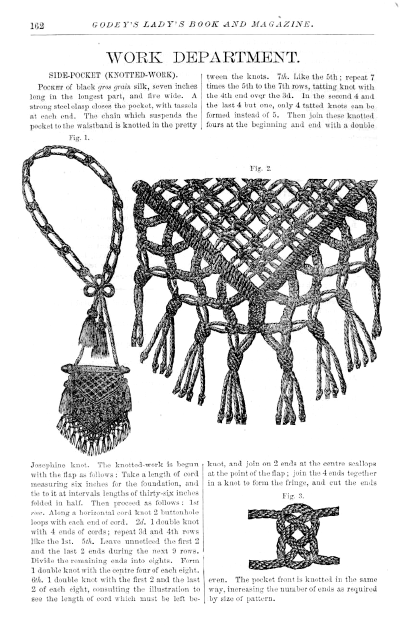 Macrame, ---. Godey's Lady's Book and Magazine, Vol. 96 (February 1878), 1 page. CD (HWDA07). Posted December 12, 2003. SAMPLE PAGE. File size 740 KB PDF