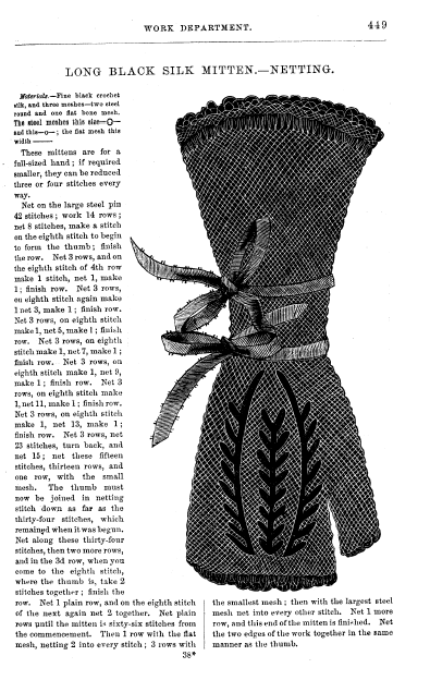 Long Black Silk Mitten -- Netting, ---. Godey's Lady's Book and Magazine, 1860, 1 page. CD (HWDA09). Posted August 1, 2003. SAMPLE PAGE. File size 536 KB PDF