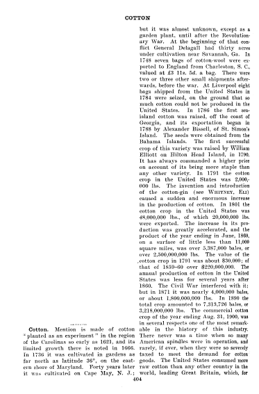 Cotton, ---. Harper's Encyclopaedia of United States History, 1902, 2 pages. Posted June 18, 2004. SAMPLE PAGE. File size 480 KB PDF