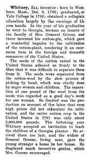Whitney, Eli, ---. Harper's Encyclopaedia of United States History, 1902, 1 page. Posted June 19, 2004. SAMPLE PAGE. File size 580 KB PDF
