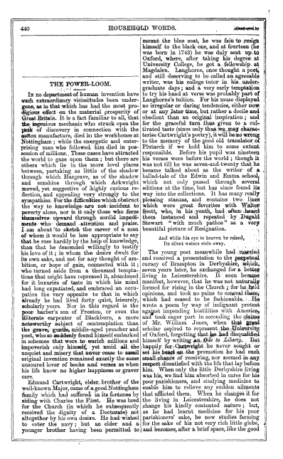 The Power Loom, Dickens, Charles. Household Words, Vol. 5 (1853), 6 pages. CD (HWDA10). Posted July 11, 2004. SAMPLE PAGE. File size 1 MB PDF
