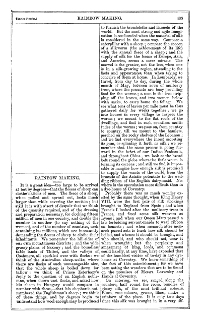Rainbow Making, Dickens, Charles. Household Words, Vol. 5 (1853), 6 pages. CD (HWDA10). Posted July 11, 2004. SAMPLE PAGE. File size 1 MB PDF