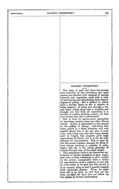Silken Chemistry, Dickens, Charles. Household Words, Vol. 5 (1853), 3 pages. CD (HWDA10). Posted July 11, 2004. SAMPLE PAGE. File size 628 KB PDF