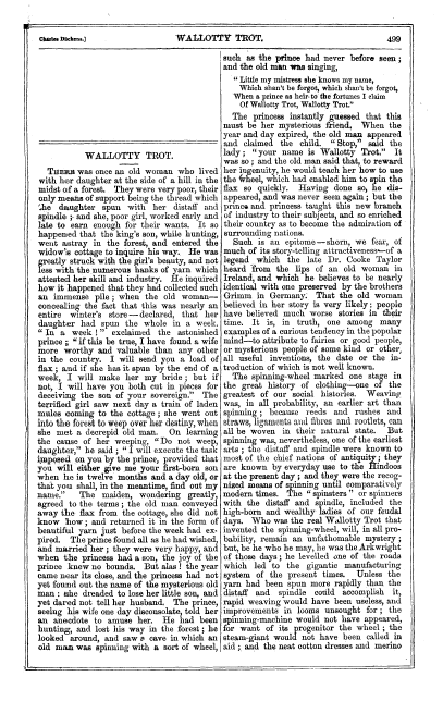 Wallotty Trot, Dickens, Charles. Household Words, Vol. 5 (1853), 5 pages. CD (HWDA10). Posted July 11, 2004. SAMPLE PAGE. File size 956 KB PDF