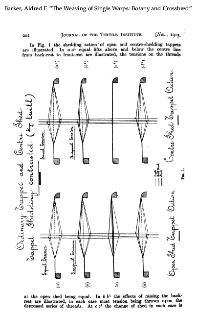 Weaving of Single Warps: Botany and Crossbred, Barker, Aldred F. Journal of The Textile Institute, Vol. 6, No, 2 (November 1915), 12 pages. CD (HWDA08). Posted June 20, 2003. SAMPLE PAGE. File size 1.1 MB PDF