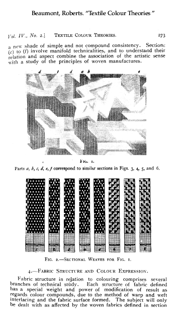 Textile Colour Theories, Beaumont, Roberts. Journal of The Textile Institute, Vol. 4, No, 2 (November1913), 15 pages. CD (HWDA08). Posted April 10, 2003. SAMPLE PAGE. File size 1.5 MB PDF