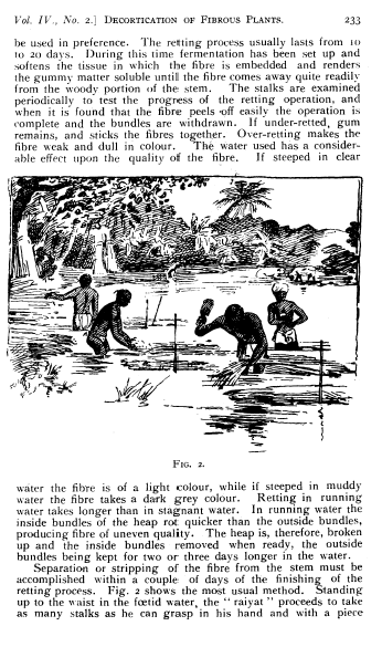 Decortication of Fibrous Plants, with Special Reference to the Belgian Flax Industry, Carter, H. R. Journal of The Textile Institute, Vol. 4, No, 2 (November 1913), 34 pages. CD (HWDA08). Posted April 13, 2003. SAMPLE PAGE. File size 3 MB PDF