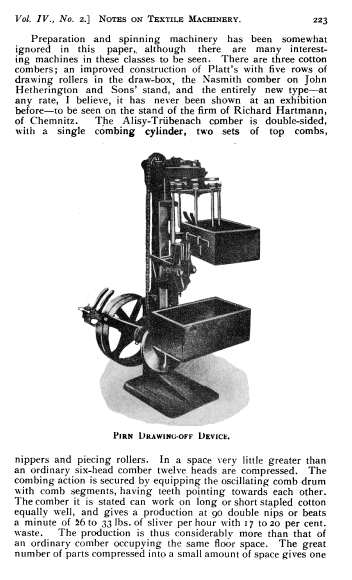Some Notes on Textile Machinery Displayed at Ghent Exhibition, Nasmith, Frank. Journal of The Textile Institute, Vol. 4, No, 2 (November 1913), 16 pages. CD (HWDA08). Posted April 12, 2003. SAMPLE PAGE. File size 1.5 MB PDF