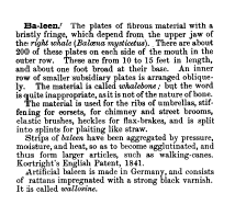 Baleen, ---. Knight's American Mechanical Dictionary, 1876, 1 page. Posted May 11, 2004. SAMPLE PAGE. File size 408 KB PDF