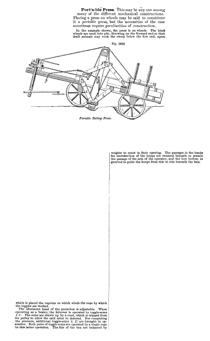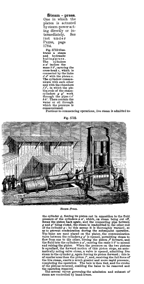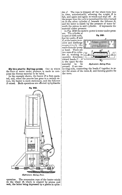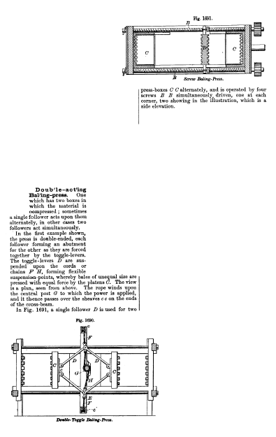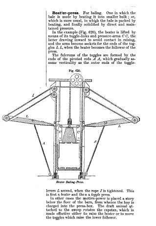 Double-Acting Baling Press, ---. Knight's American Mechanical Dictionary, 1876, 1 page. Posted September 7, 2003. SAMPLE PAGE. File size 428 KB PDF