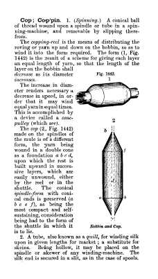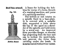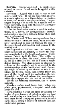 Bobbin, ---. Knight's American Mechanical Dictionary, 1876, 1 page. Posted August 13, 2003. SAMPLE PAGE. File size 432 KB PDF