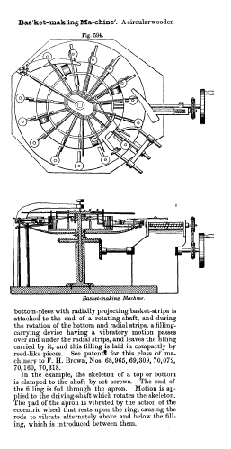 Basket-Making Machine, ---. Knight's American Mechanical Dictionary, 1876, 1 page. Posted August 21, 2003. SAMPLE PAGE. File size 436 KB PDF