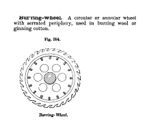Burring Wheel, ---. Knight's American Mechanical Dictionary, 1876, 1 page. Posted May 11, 2004. SAMPLE PAGE. File size 396 KB PDF