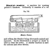 Blanket Washer, ---. Knight's American Mechanical Dictionary, 1876, 1 page. Posted May 11, 2004. SAMPLE PAGE. File size 404 KB PDF