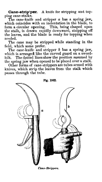 Cane Stripper, ---. Knight's American Mechanical Dictionary, 1876, 1 page. Posted June 14, 2004. SAMPLE PAGE. File size 412 KB PDF
