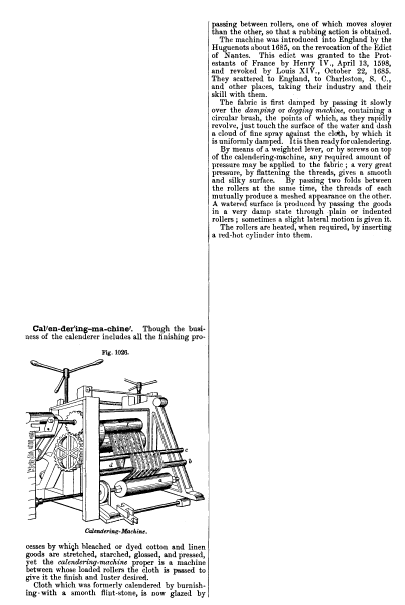 Calendering, ---. Knight's American Mechanical Dictionary, 1876, 1 page. Posted June 19, 2004. SAMPLE PAGE. File size 424 KB PDF