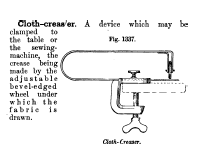 Cloth Creaser, ---. Knight's American Mechanical Dictionary, 1876, 1 page. Posted September 3, 2003. SAMPLE PAGE. File size 396 KB PDF