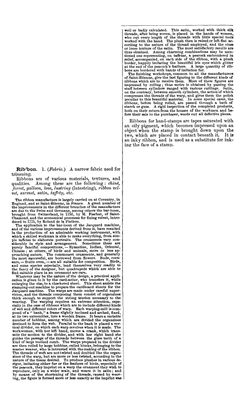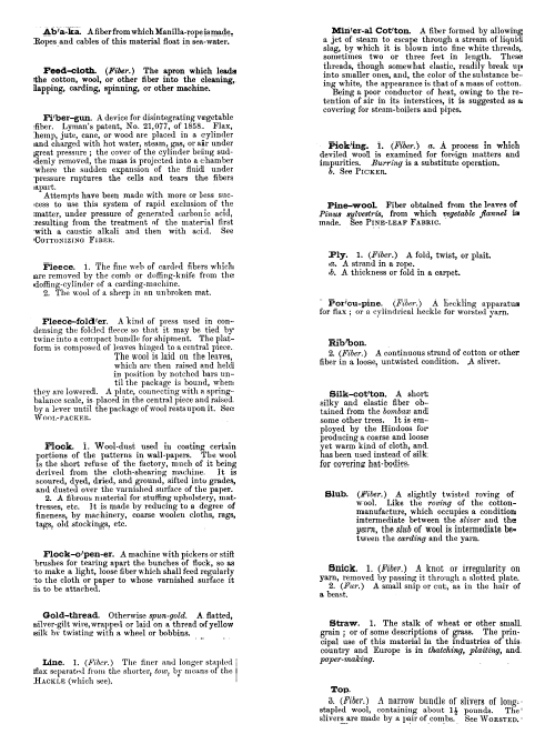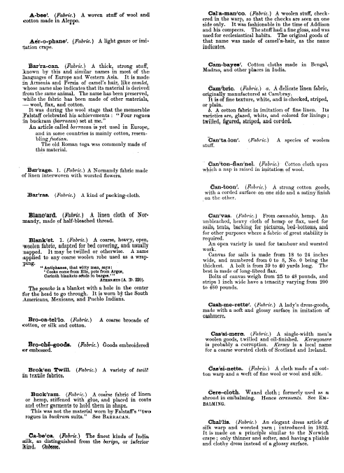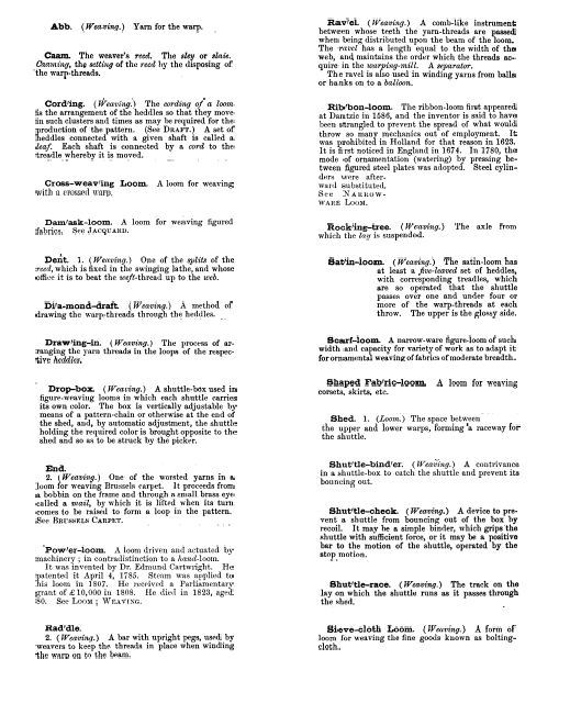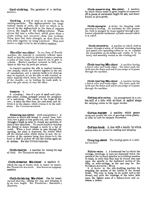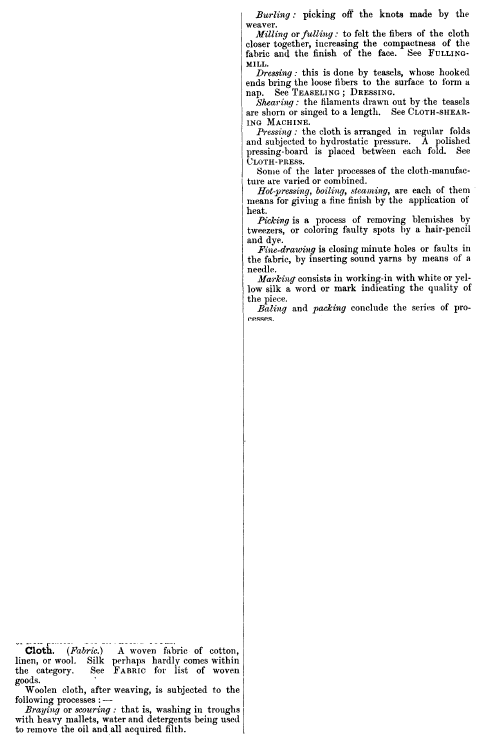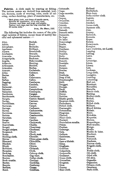 Fabric, ---. Knight's American Mechanical Dictionary, 1876, 2 pages. Posted September 7, 2003. SAMPLE PAGE. File size 480 KB PDF