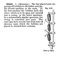 Creel, ---. Knight's American Mechanical Dictionary, 1876, 1 page. Posted May 11, 2004. SAMPLE PAGE. File size 404 KB PDF
