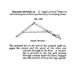 Carpet Stretcher, ---. Knight's American Mechanical Dictionary, 1876, 1 page. Posted May 11, 2004. SAMPLE PAGE. File size 400 KB PDF