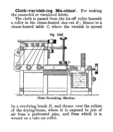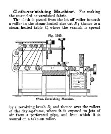 Cloth Varnishing Machine, ---. Knight's American Mechanical Dictionary, 1876, 1 page. Posted May 11, 2004. SAMPLE PAGE. File size 408 KB PDF