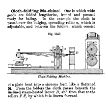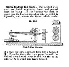 Cloth-Folding Machine, ---. Knight's American Mechanical Dictionary, 1876, 1 page. Posted September 5, 2003. SAMPLE PAGE. File size 412 KB PDF