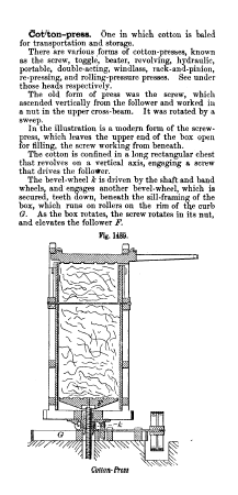 Cotton Press, ---. Knight's American Mechanical Dictionary, 1876, 1 page. Posted September 7, 2003. SAMPLE PAGE. File size 428 KB PDF