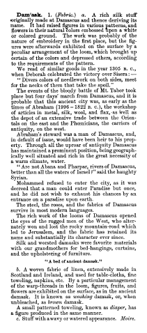 Damask, ---. Knight's American Mechanical Dictionary, 1876, 1 page. Posted September 19, 2003. SAMPLE PAGE. File size 444 KB PDF