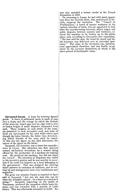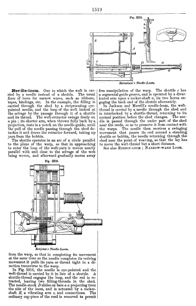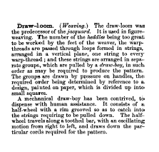 Draw-Loom, ---. Knight's American Mechanical Dictionary, 1876, 1 page. Posted September 7, 2003. SAMPLE PAGE. File size 412 KB PDF