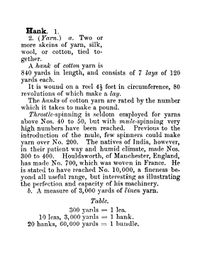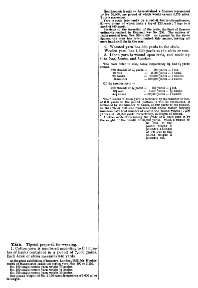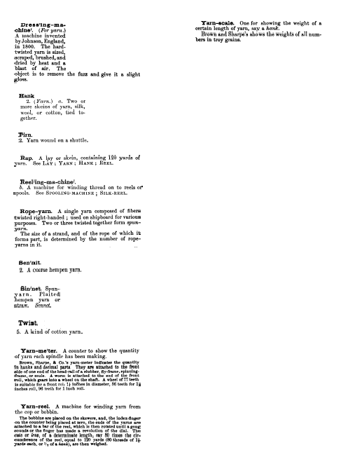 Yarn , ---. Knight's American Mechanical Dictionary, 1876, 1 page. Posted September 14, 2003. SAMPLE PAGE. File size 428 KB PDF