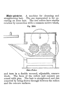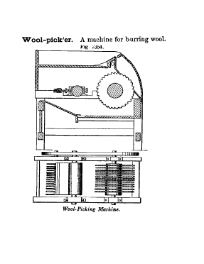 Wool Picker, ---. Knight's American Mechanical Dictionary, 1876, 1 page. Posted September 26, 2004. SAMPLE PAGE. File size 400 KB PDF