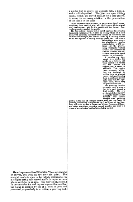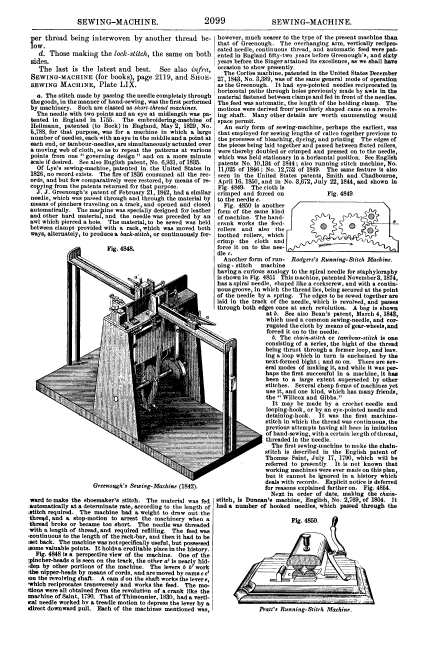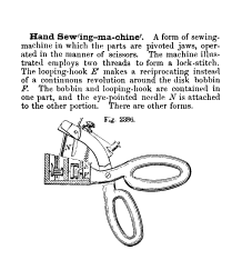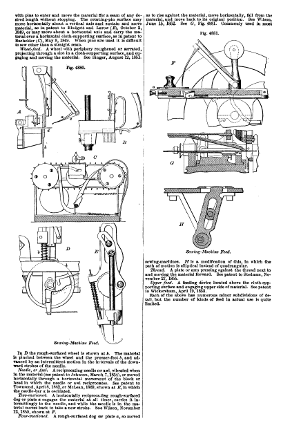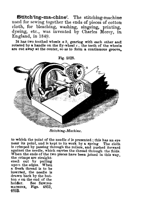 Stitching Machine, ---. Knight's American Mechanical Dictionary, 1876, 1 page. Posted September 26, 2004. SAMPLE PAGE. File size 420 KB PDF