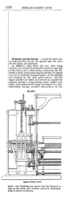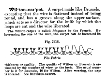 Wilton Carpet, ---. Knight's American Mechanical Dictionary, 1876, 1 page. Posted September 13, 2003. SAMPLE PAGE. File size 404 KB PDF