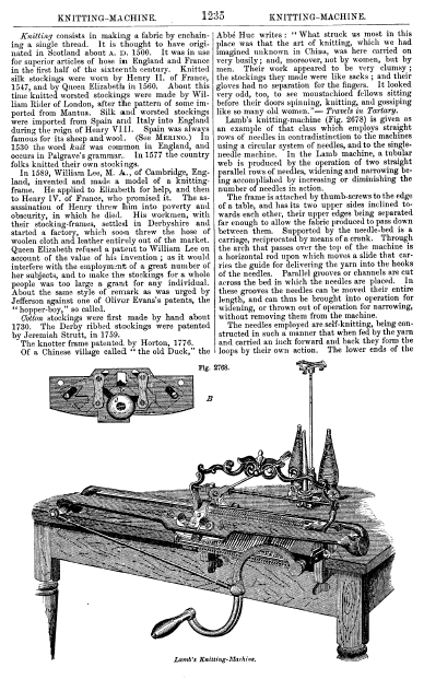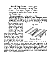Stocking Frame, ---. Knight's American Mechanical Dictionary, 1876, 1 page. Posted September 11, 2003. SAMPLE PAGE. File size 416 KB PDF