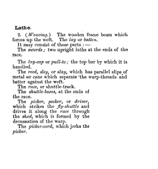 Warp Lace, ---. Knight's American Mechanical Dictionary, 1876, 1 page. CD (LDA03). Posted September 14, 2003. SAMPLE PAGE. File size 416 KB PDF
