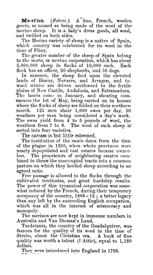 [Wool], ---. Knight's American Mechanical Dictionary, 1876, 2 pages. Note: Collected short articles. Posted August 20, 2004. SAMPLE PAGE. File size 580 KB PDF