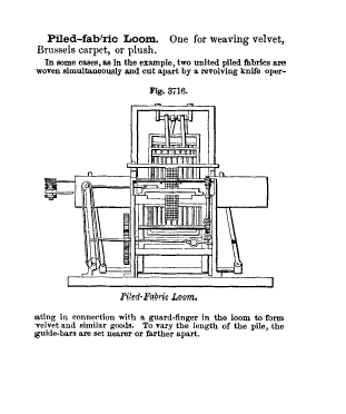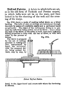 Tufted Fabric, ---. Knight's American Mechanical Dictionary, 1876, 1 page. Posted September 19, 2003. SAMPLE PAGE. File size 416 KB PDF