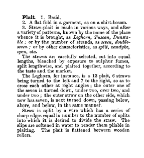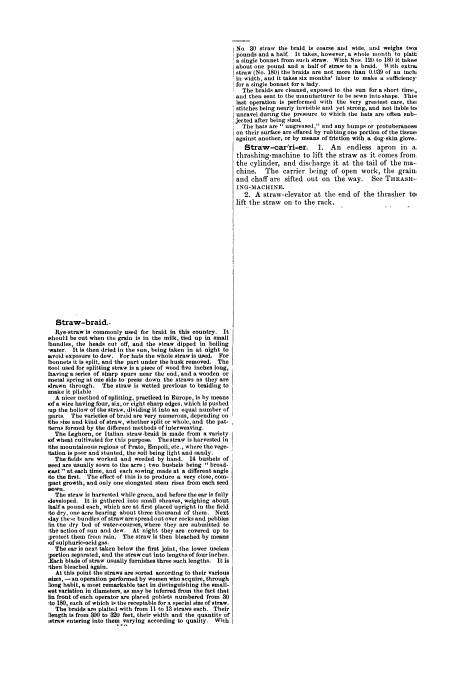Straw Braid, ---. Knight's American Mechanical Dictionary, 1876, 1 page. Posted September 26, 2004. SAMPLE PAGE. File size 448 KB PDF