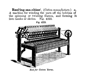 Winding Machine, ---. Knight's American Mechanical Dictionary, 1876, 1 page. Posted September 13, 2003. SAMPLE PAGE. File size 428 KB PDF