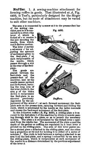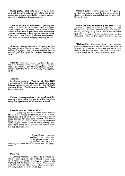 Tailoring Machine, ---. Knight's American Mechanical Dictionary, 1876, 1 page. Posted September 26, 2004. SAMPLE PAGE. File size 520 KB PDF