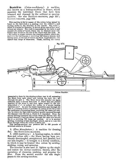 Cotton-izing Fiber, ---. Knight's American Mechanical Dictionary, 1876, 1 page. Posted September 7, 2003. SAMPLE PAGE. File size 412 KB PDF