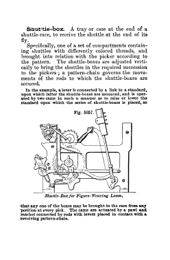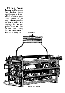 Three-Box Loom, ---. Knight's American Mechanical Dictionary, 1876, 1 page. Posted September 12, 2003. SAMPLE PAGE. File size 432 KB PDF