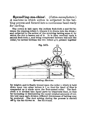 Spreading Machine, ---. Knight's American Mechanical Dictionary, 1876, 1 page. Posted September 26, 2004. SAMPLE PAGE. File size 412 KB PDF